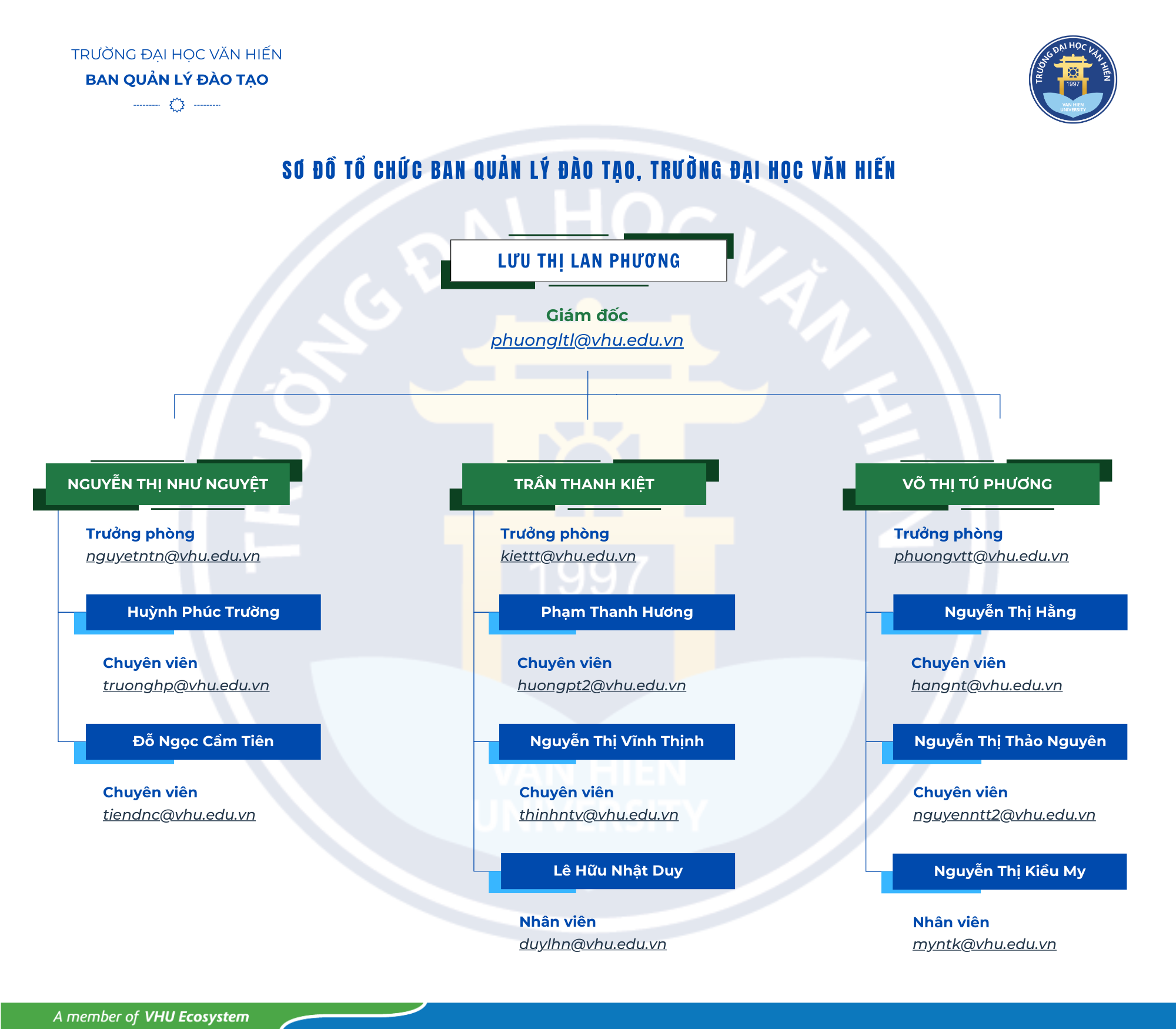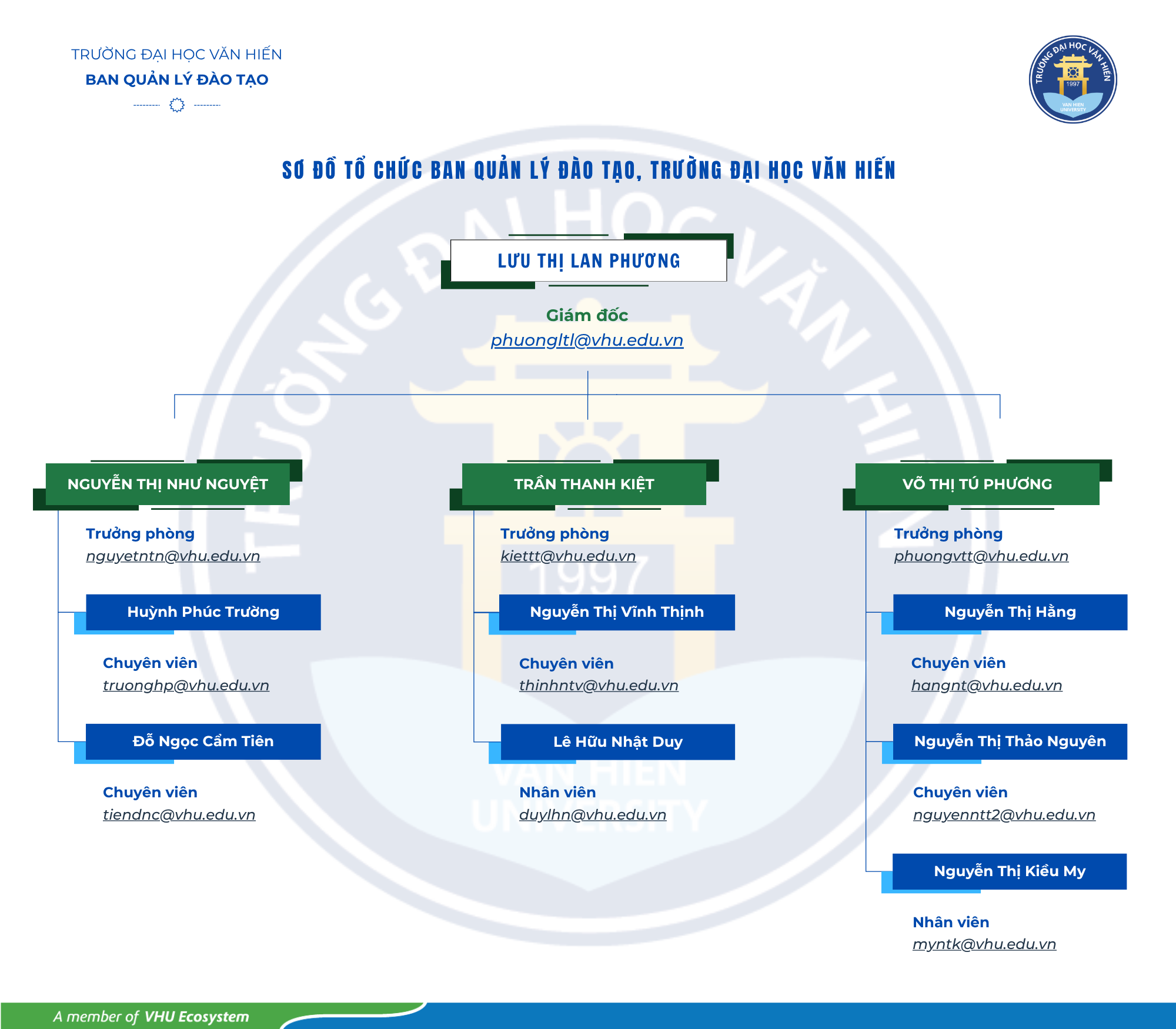 Ban Quản lý đào tạo là đơn vị chức năng trực thuộc sự quản lý của Ban Điều hành trường Đại học Văn Hiến, có chức năng tham mưu, giúp việc cho Ban Điều hành Nhà trường trong công tác: xây dựng mục tiêu đào tạo; quy mô phát triển, cơ cấu lĩnh vực, ngành nghề, loại hình đào tạo, cơ cấu chương trình; nội dung và phương pháp đào tạo cho bậc đào tạo đại học; tổ chức, quản lý công tác đào tạo theo quy chế, quy định của cơ quan nhà nước có liên quan và của Trường.